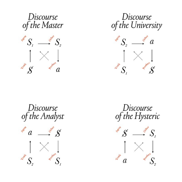 Reading between the lines, that is not what happens. By saying that everything is subjective and therefore there is no objectivity, we have removed the subjectivity from the topic we are discussing; we have objectified it, and this is extremely violent, as we also have established the non-existence of objectivity as an absolute truth. Real violence is not coming from a false belief that we can grasp an objective truth, the real violence resides in that many narratives locate objectivity and subjectivity where it is harmful for individuation, placing the individual in the category of object as a product, just as in slavery. And this can be understood by analyzing speech and the structure of a discourse. Psychoanalyst Jaques Lacan addresses this aspect in careful details, recognizing four discourses which he called Master, University, Hysteric and Analyst, explaining how these relate dynamically to one another.